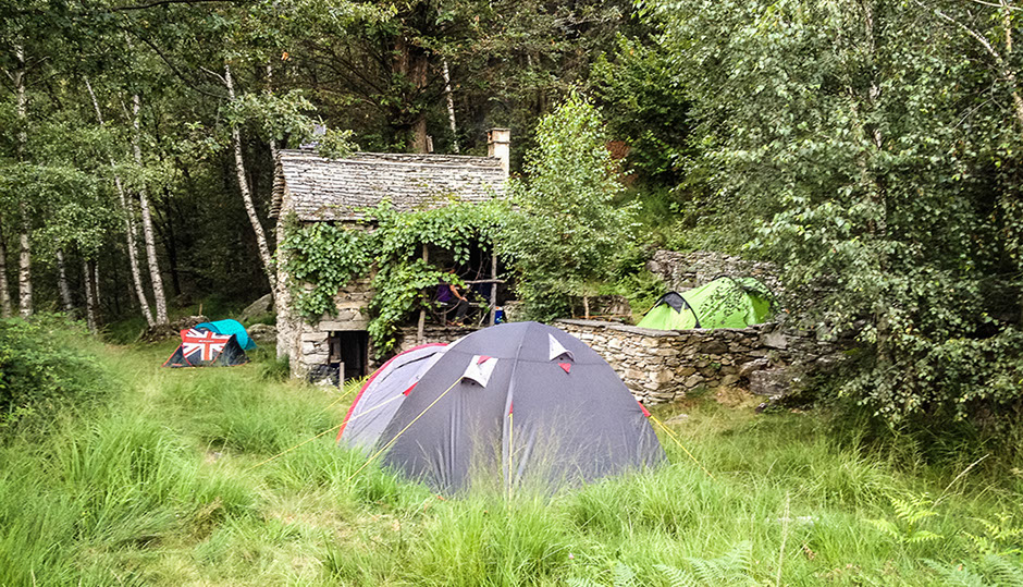 Camping bei den Dreharbeiten im Tessin vor Martin Schläpfers Hütte